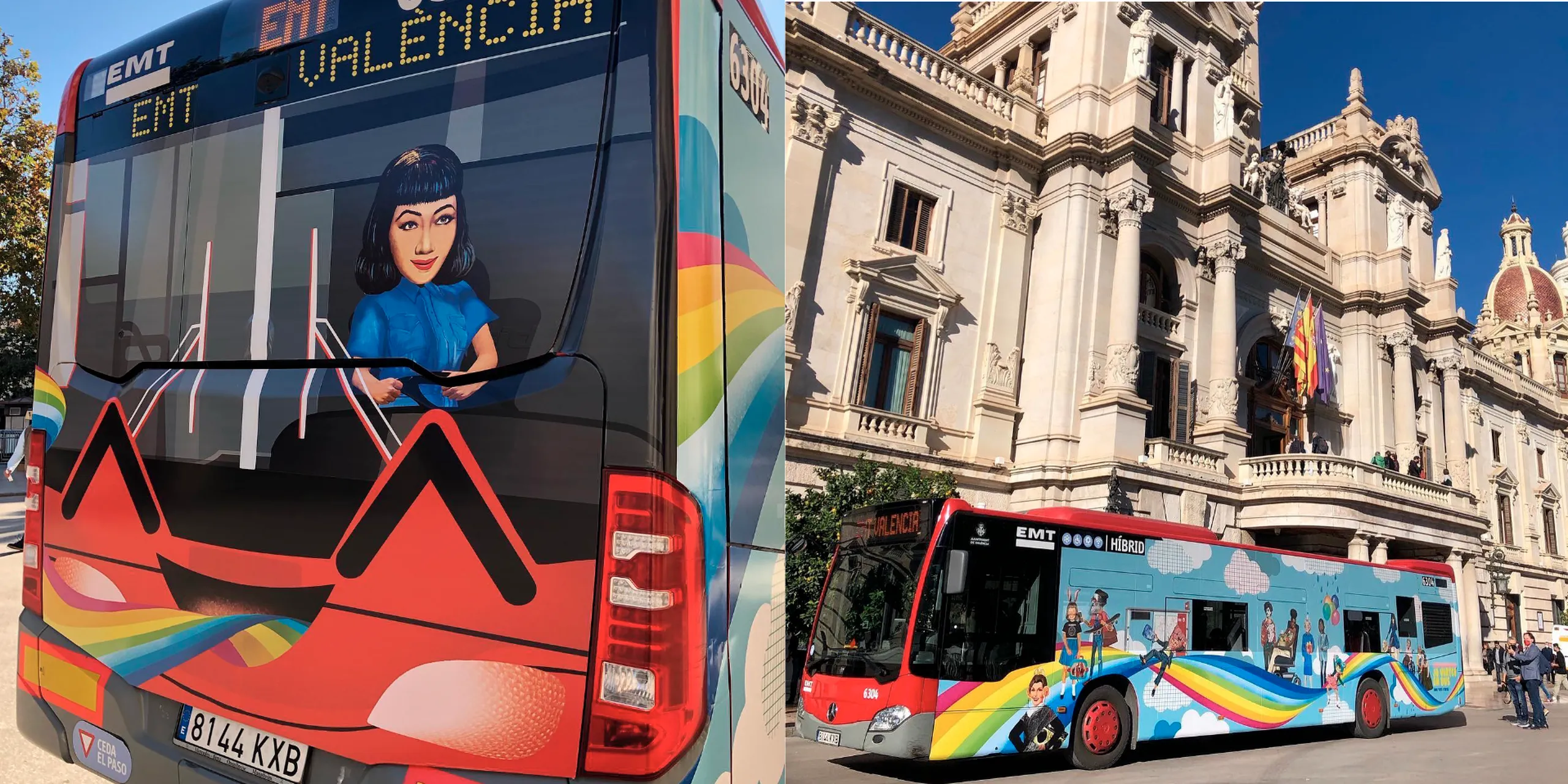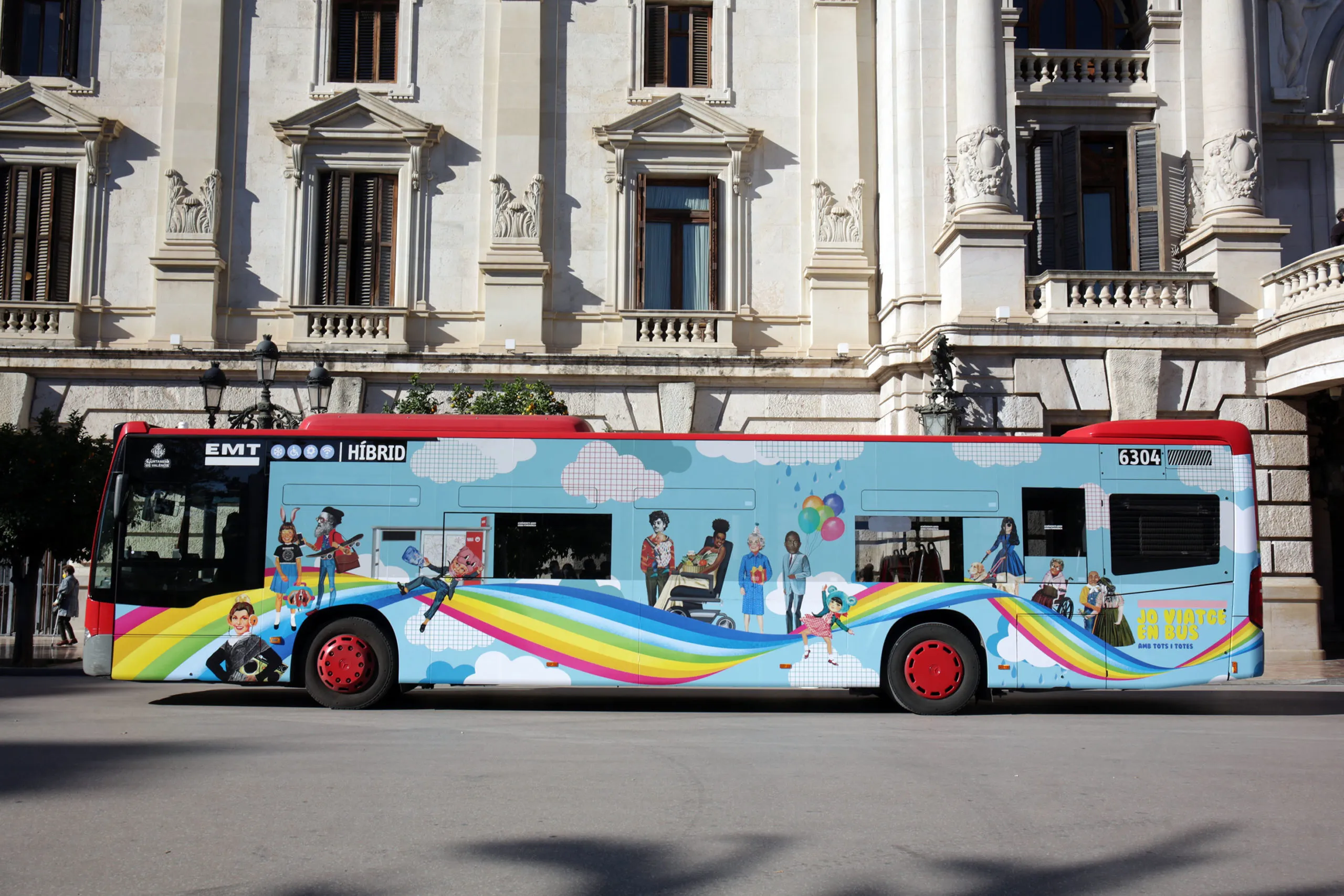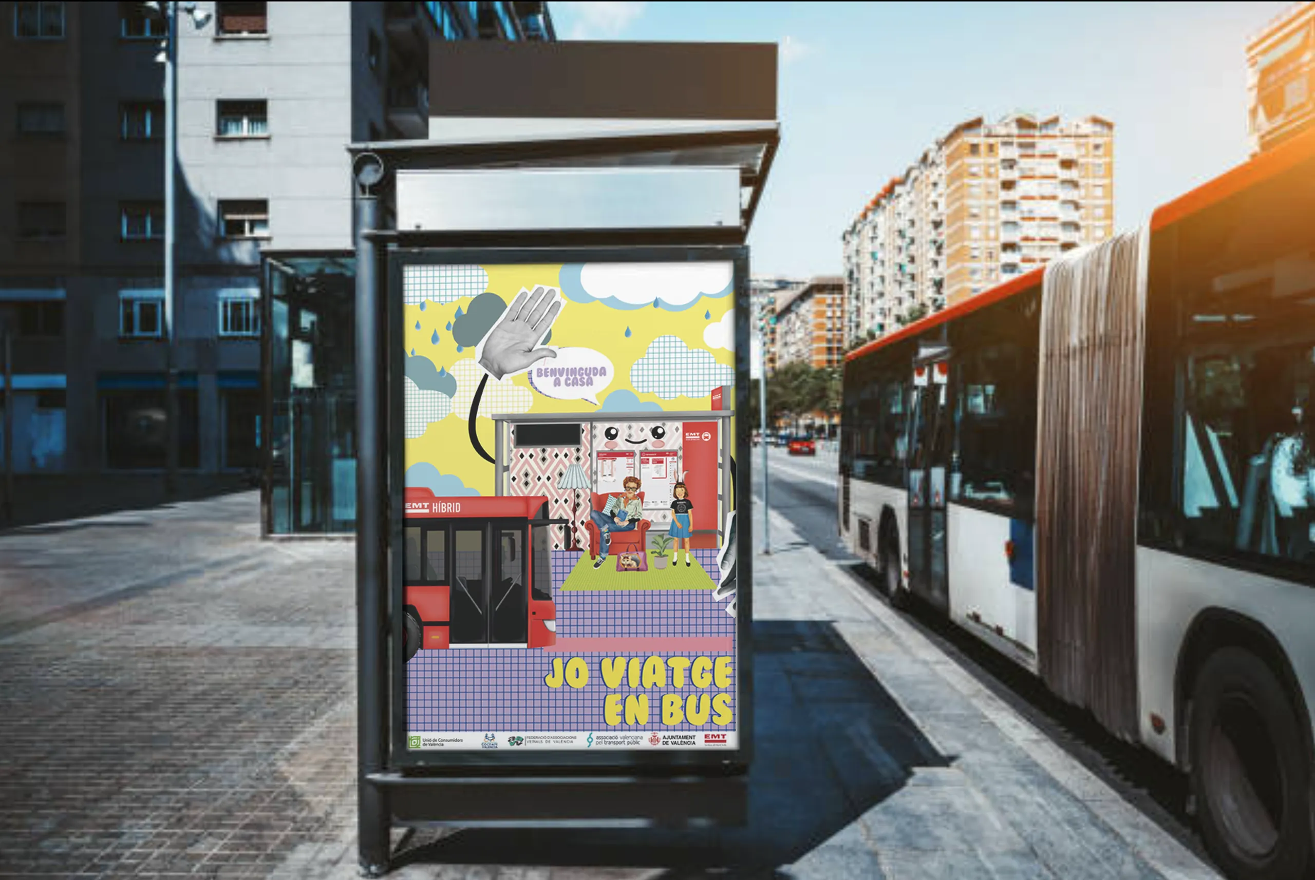 Imagen gráfica de la campaña de fomento del transporte público de la EMT, “Jo viatge en bus», asignada a través de concurso público a “Fenómena” colectivo que comparto con mi socia Laura Cuello. Esta campaña se pudo ver en 26 autobuses vinilados, 85 marquesinas y 90 MUPIS distribuidos por toda la ciudad. Se ha realizado también una tirada especial de tarjetas Mobilis y 4 vídeos de animación.